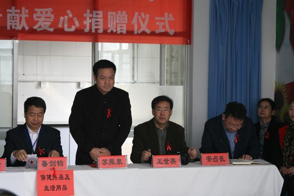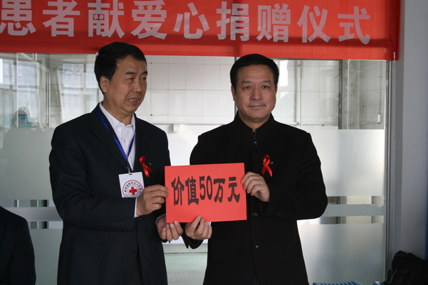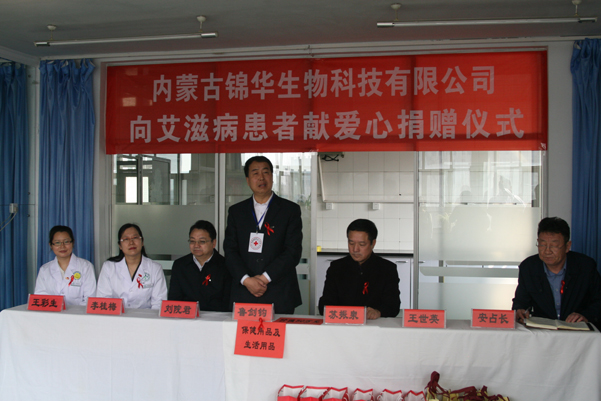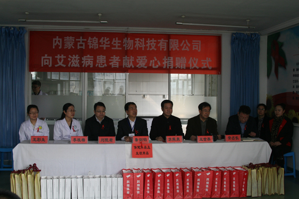 2017年4月5日上午,內(nèi)蒙古錦華生物科技有限公司總經(jīng)理蘇振泉及呼市地區(qū)高級營銷總監(jiān)來到呼和浩特市第二醫(yī)院向13位艾滋病患者和醫(yī)護(hù)人員捐贈錦華產(chǎn)品,以表錦華人的愛心。呼和浩特市人大副主任市紅十字會會長魯劍鈞,呼市衛(wèi)生計劃委員會副主任劉院君,第二醫(yī)院院長李桂梅等領(lǐng)導(dǎo)接受了捐贈并講話。