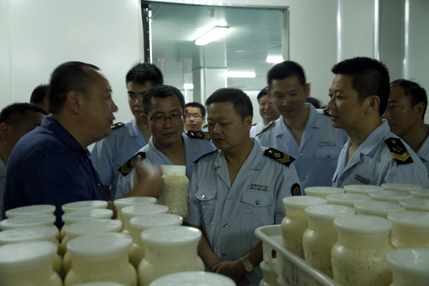 食藥監(jiān)領(lǐng)導與生產(chǎn)副總房美春親切交流
