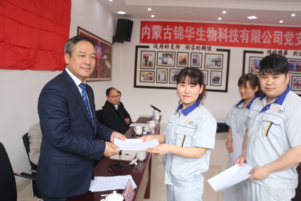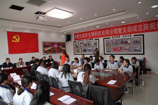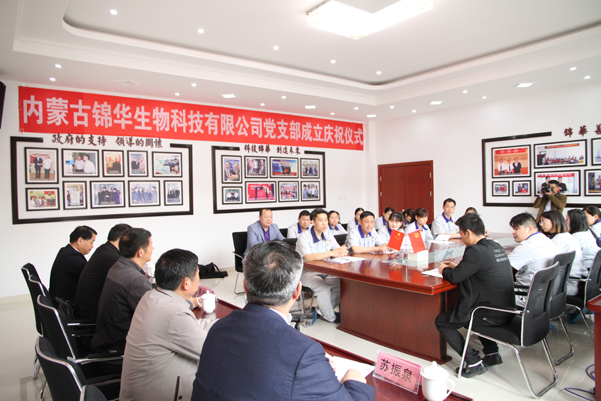 2018年4月15日,在金寨現(xiàn)代產(chǎn)業(yè)園區(qū)舉行了內(nèi)蒙古錦華生物科技有限公司金寨分公司建立黨支部慶祝儀式。會(huì)議由錦華公司金寨生產(chǎn)基地黨支部書(shū)記、錦華公司總經(jīng)理蘇振泉主持,金寨縣政協(xié)副主席、工商聯(lián)主席易成林,金寨縣宣傳部副部長(zhǎng)張仁袞,現(xiàn)代產(chǎn)業(yè)園招商局局長(zhǎng)、非公黨委副書(shū)記付澤民,非公黨委委員、黨建指導(dǎo)員廖榮成參加慶祝儀式。