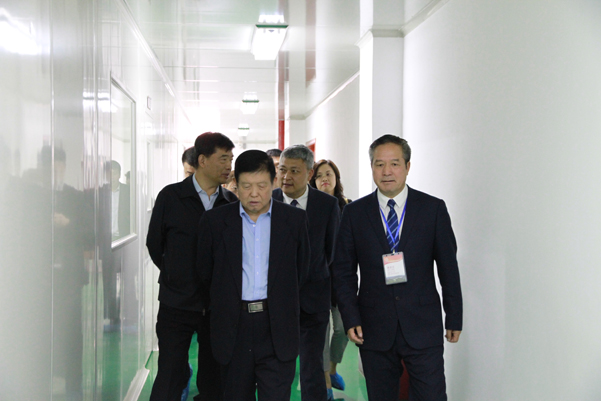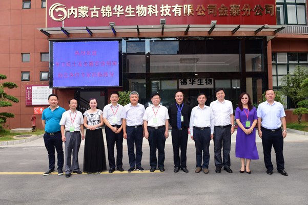 李玉院士、國務院參事劉奇、?,摃L、邊銀丙會長、胡桂芳主任、汪冬縣長、溫董、蘇總在錦華公司合影留念