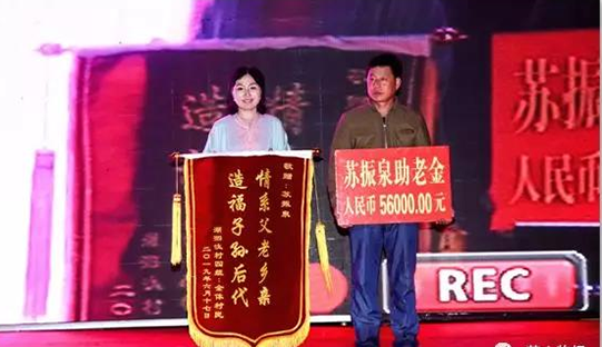 內(nèi)蒙古錦華集團(tuán)董事長溫晴向湖泗汰村70歲以上老人捐贈助老金