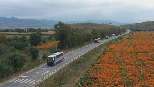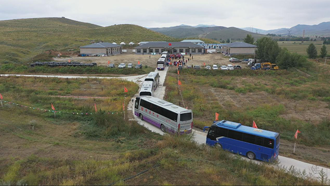 錦華精英的車隊(duì)陸續(xù)駛?cè)胩K人牧場