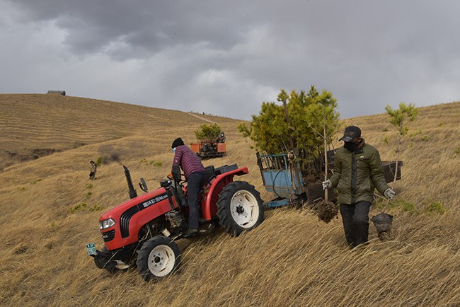 2020年二期工程植樹造林七千多畝,有樟子松五千多畝、落葉松、榆樹一千多畝、寒地蘋果一千多畝。