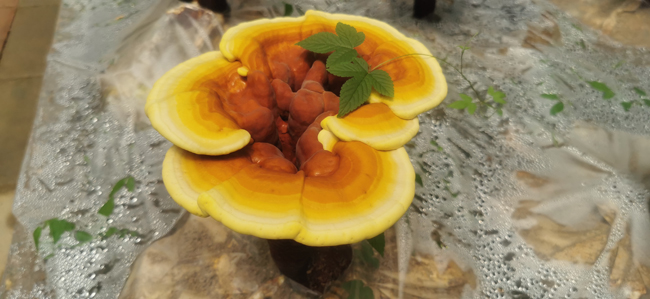 據(jù)種植基地負(fù)責(zé)人李文海介紹,此時(shí)恰逢靈芝生長(zhǎng)最美季節(jié)。由于下菌棒的時(shí)間不同,所以每個(gè)大棚里的靈芝生長(zhǎng)狀態(tài)就不同。有的“才露尖尖角”,有的褐色的菌柄頂著嫩黃的腦袋,像一個(gè)個(gè)不諳世事的孩子,煞是可愛(ài);有的肉嘟嘟的靈芝菌蓋中間還是焦黃色,越往外面顏色越淺,最邊緣處甚至為乳白色,且靈芝形態(tài)各異。有的三五朵并在一起像祥云,有的雙耳似如意,有的嬌憨娉婷如少女。還有的靈芝幾近成熟,大大的菌蓋紅紅的,仿佛也在為即將豐收而喜悅著。