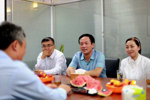 錦華公司董事長溫晴(中)、總經(jīng)理i蘇振泉(左)、內(nèi)蒙古電視臺(tái)副臺(tái)長王世英(右)參加會(huì)談